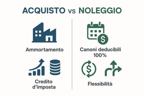 La prima dimensione da analizzare è quella fiscale e contabile. Le due opzioni, acquisto e noleggio, hanno un trattamento radicalmente diverso che influenza direttamente il bilancio aziendale, la liquidità e il carico impositivo. Vediamo nel dettaglio come.